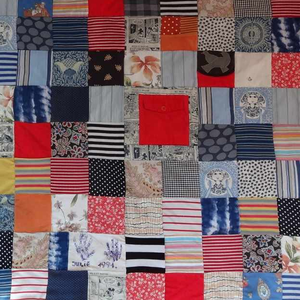 → Assemblage à la machine d’éléments d‘un patchwork, par Tanja de « Repatchit »