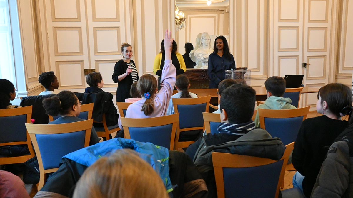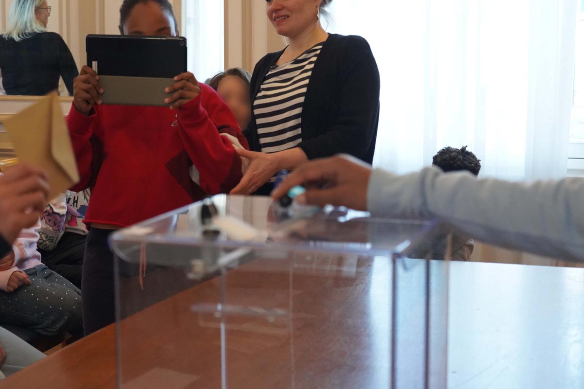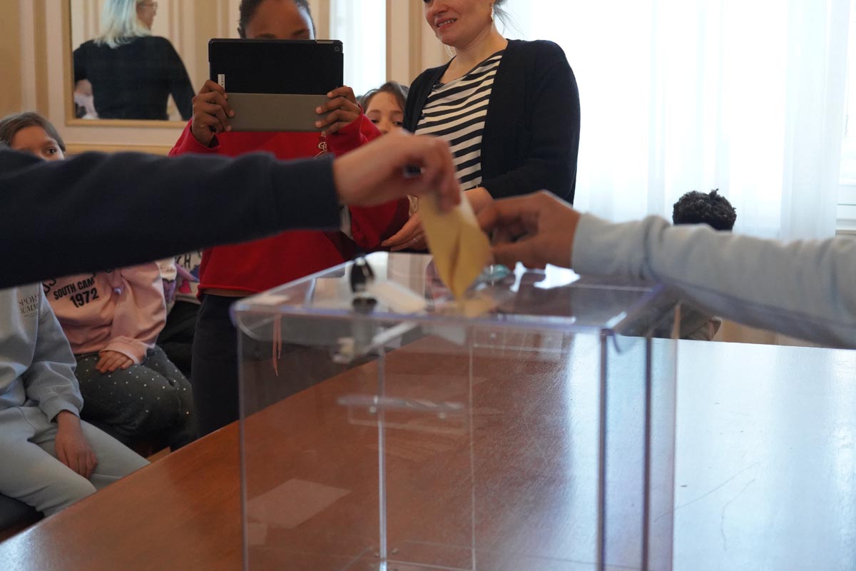 2 classes de CM2 de Marie Curie se sont rendues en mairie pour réaliser un reportage vidéo sur l’organisation et le déroulement d’une élection, guidées par les conseils d’une journaliste, parente d’élèves.