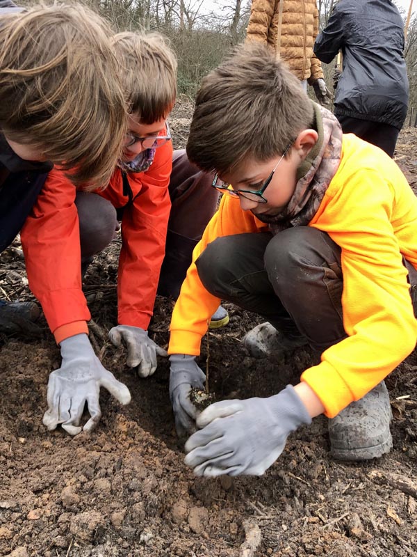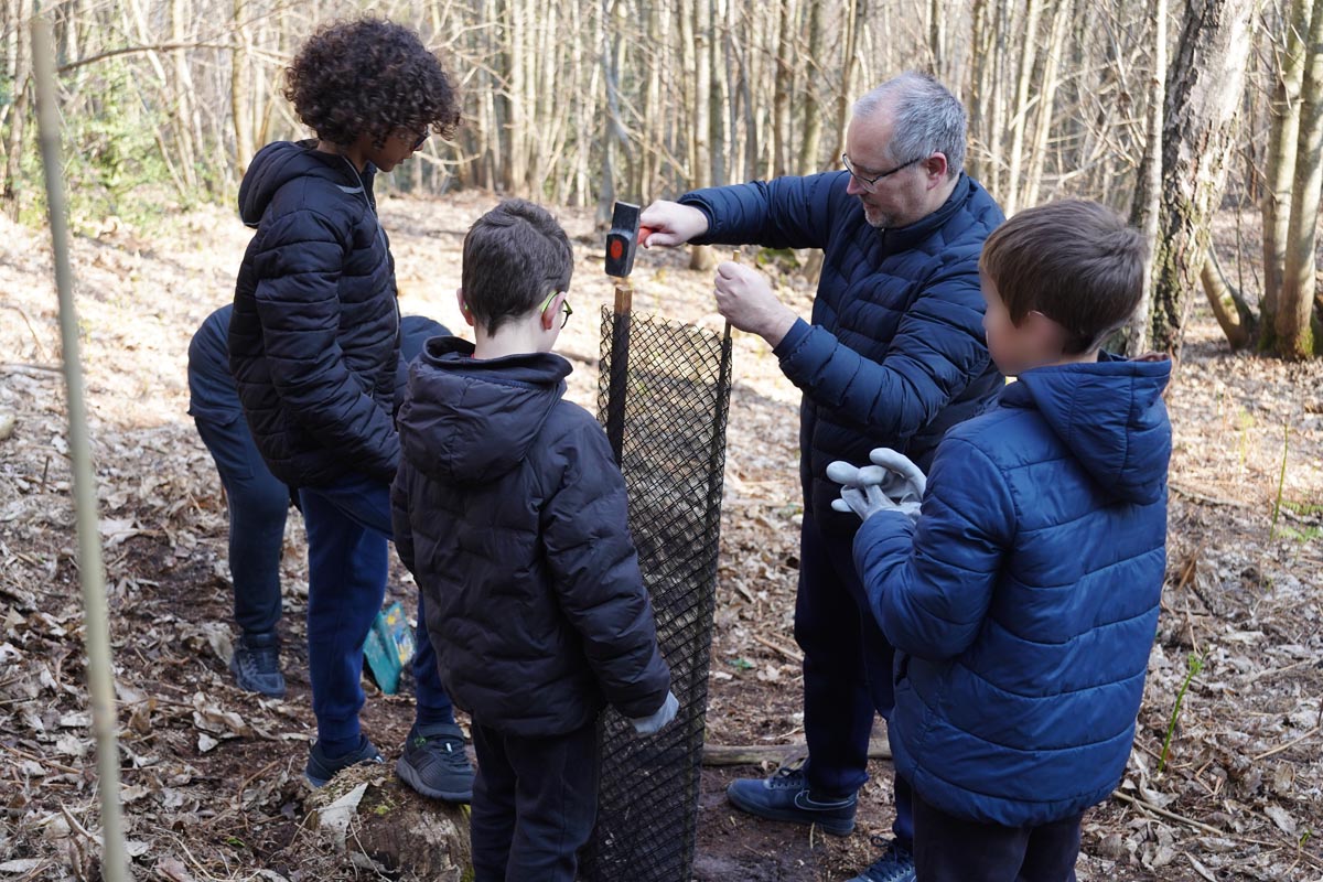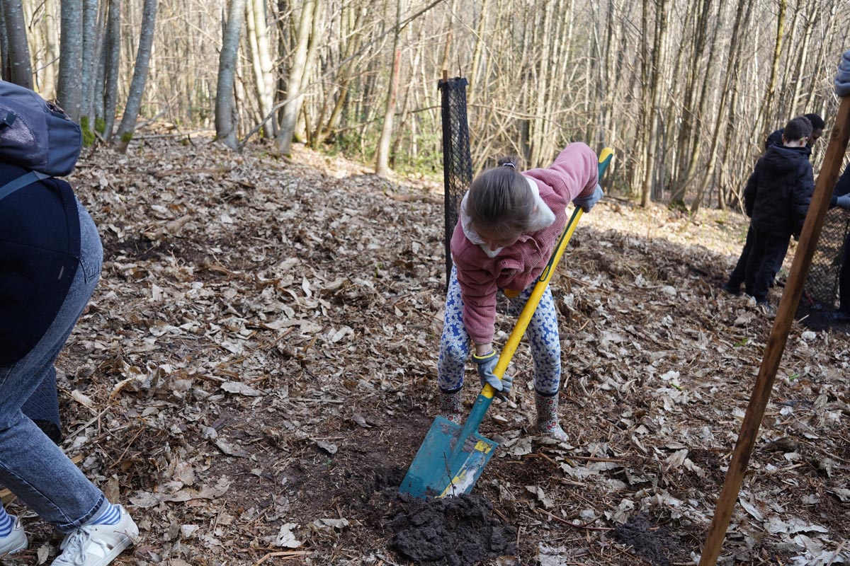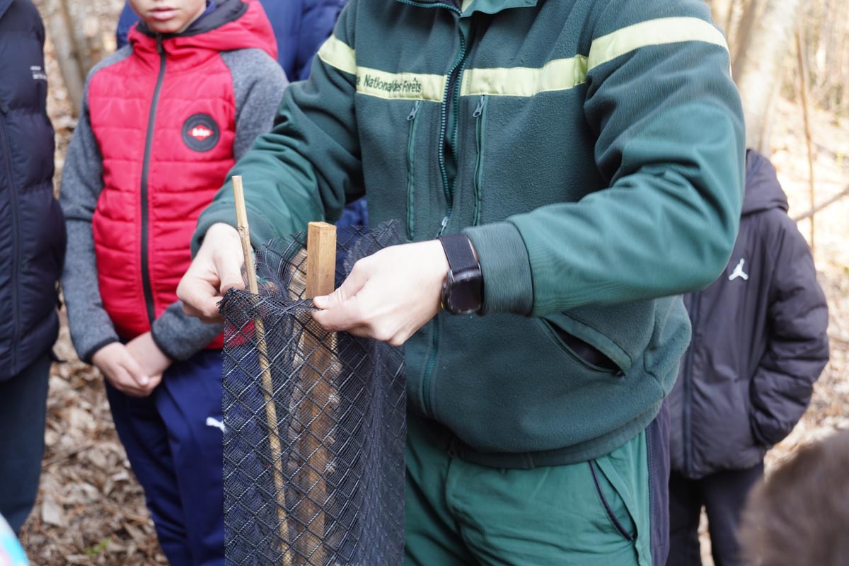 En collaboration avec l’ONF, dix classes de CM2 ont planté des semi d’alisiers blancs et de poiriers pour renouveler la forêt.