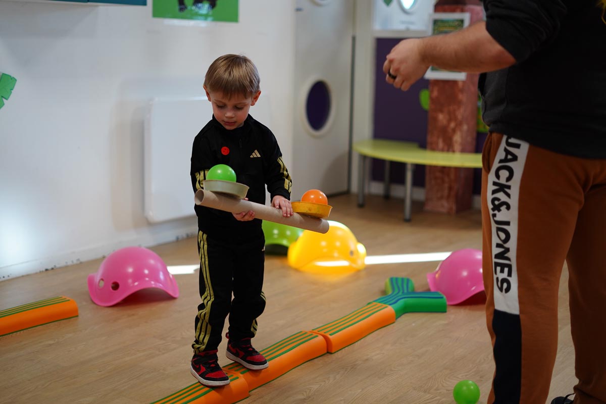 Petits et grands se sont prêtés au jeu lors des ateliers parents-enfants sur le thème des équilibres.